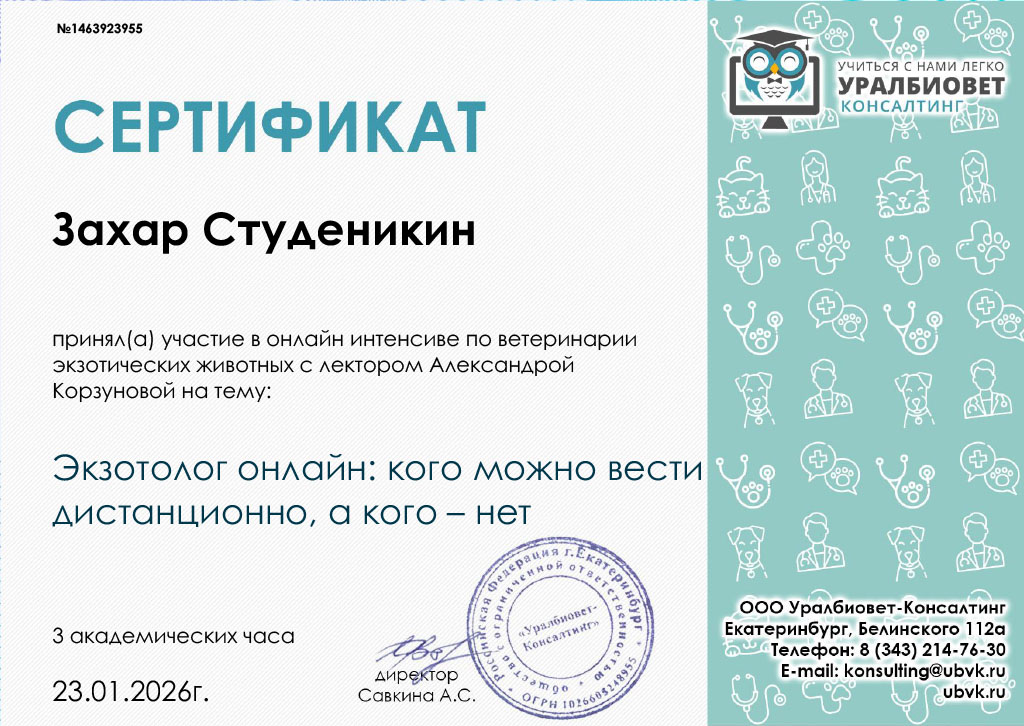 Приветствуется любовь к животным, ответственность, желание учиться и развиваться, коммуникабельность.Интересная работа, гибкий график, обучение необходимым навыкам. Звонить по тел.: +7 (4742) 34 - 02 - 82